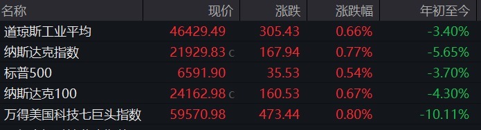 当地时间3月25日,美股三大指数集体高开并全线收涨,道指收涨0.66%、标普500指数涨0.54%、纳指涨0.77%。