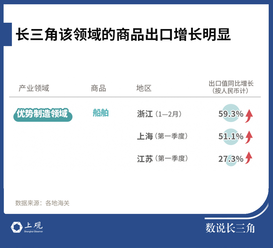 在追逐新兴产业的同时,长三角的传统优势——制造领域同样表现亮眼,构成外贸增长的坚实底座。