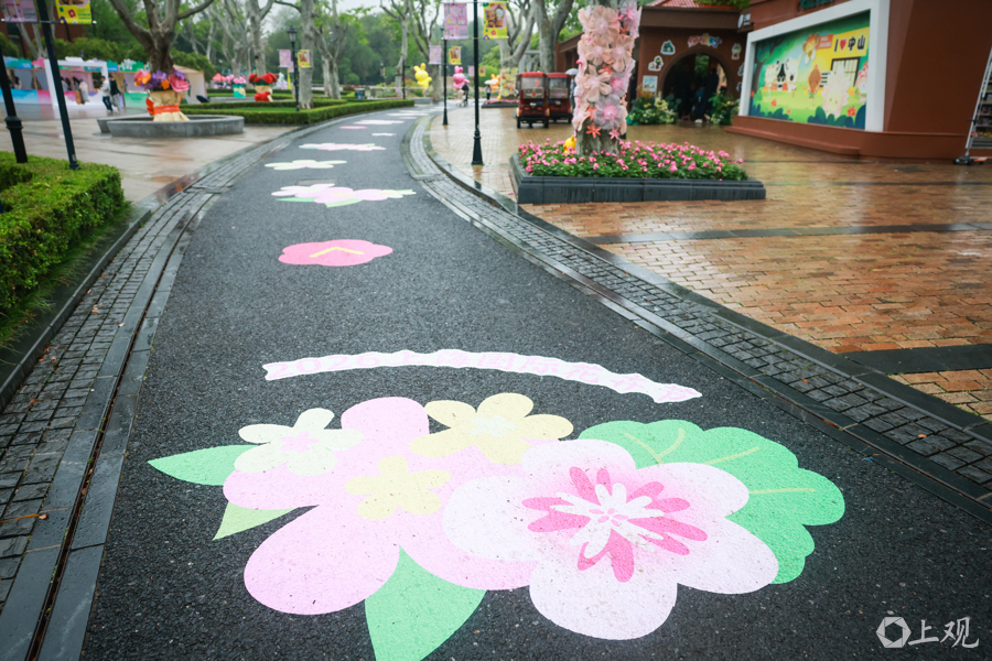 步道上的花卉图案。