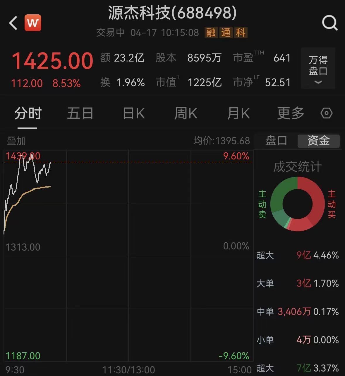 中新网4月17日电(记者 谢艺观) 4月17日,源杰科技持续走强,盘中股价突破1410元,超越贵州茅台成为A股新“股王”。公开资料显示,源杰科技是一家从半导体晶体生长,晶圆工艺,芯片测试与封装全部开发完毕,并形成工业化规模生产的高科技企业。